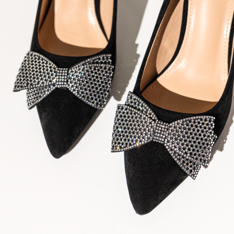 Pantofi dama cu toc subtire negru suede MOD14169