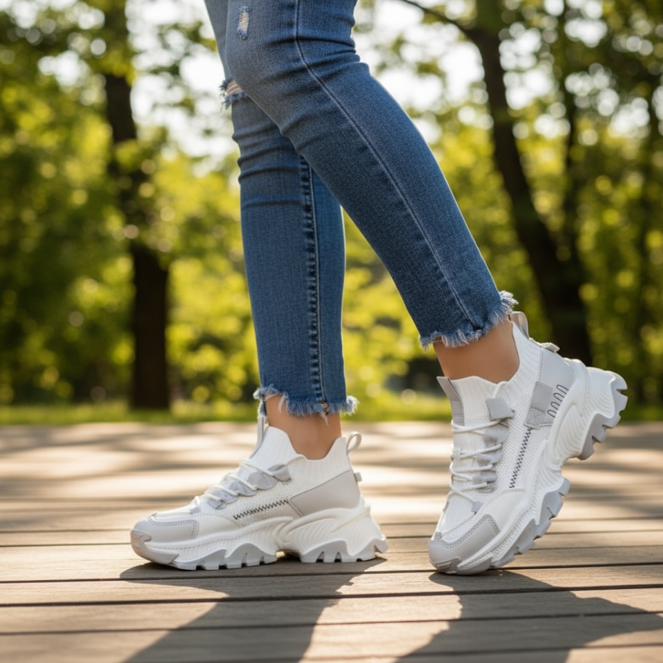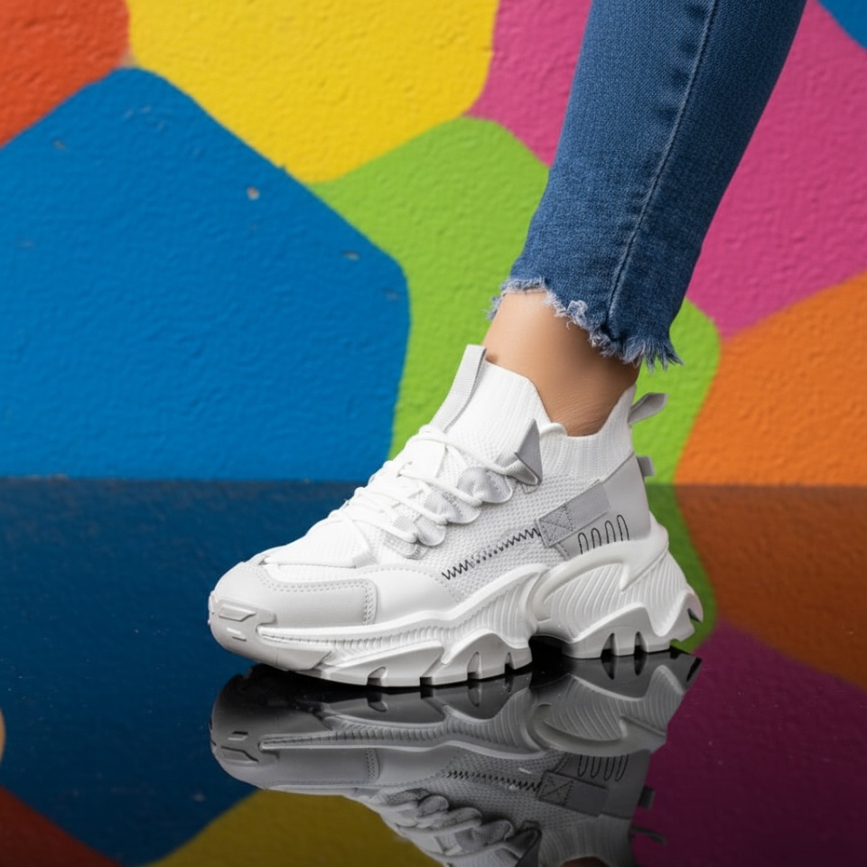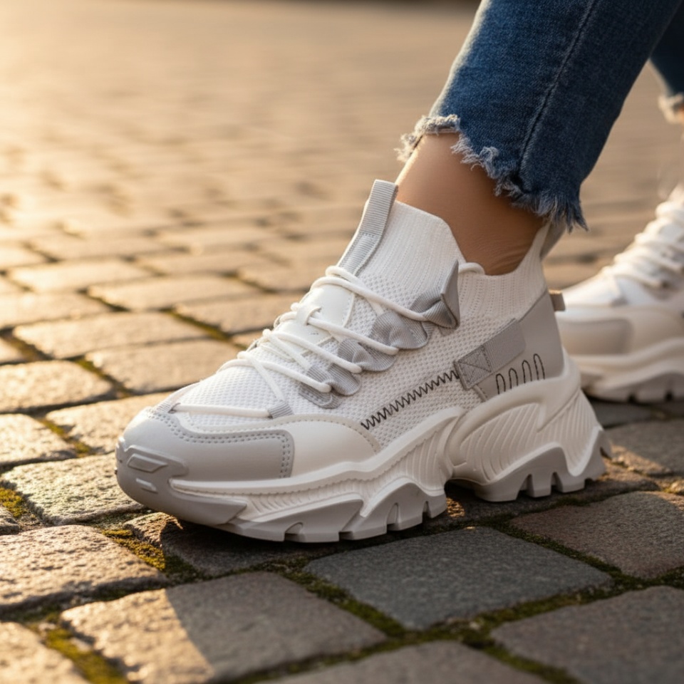 Pantofi sport dama cu talpa groasa albi cu gri MOD09199