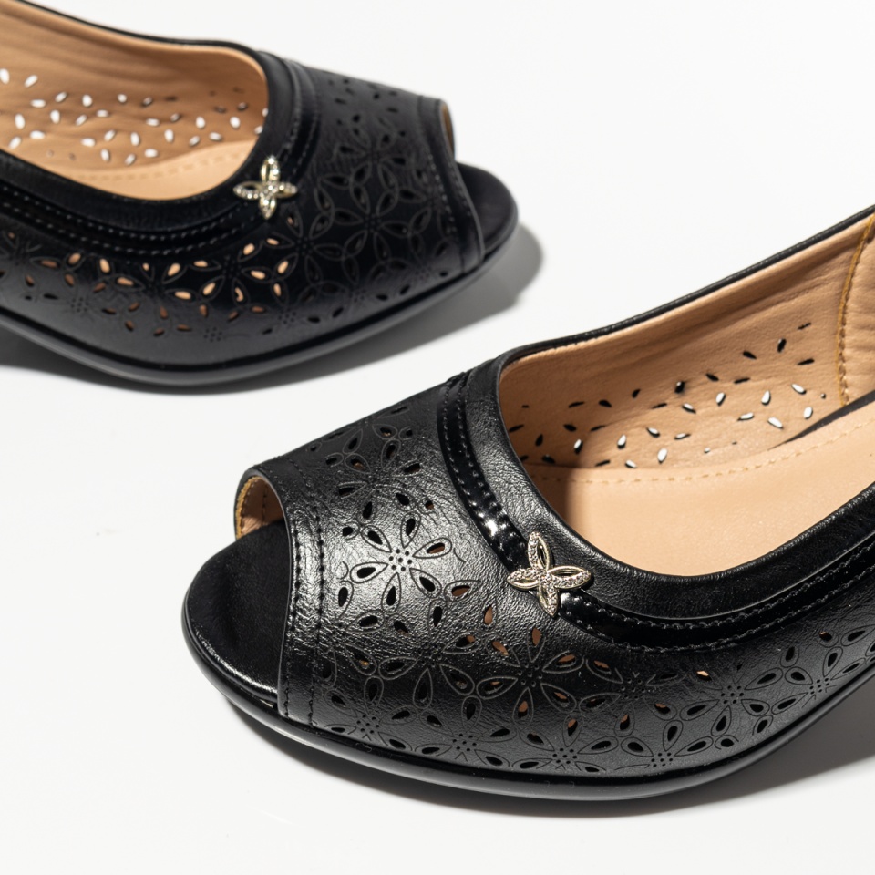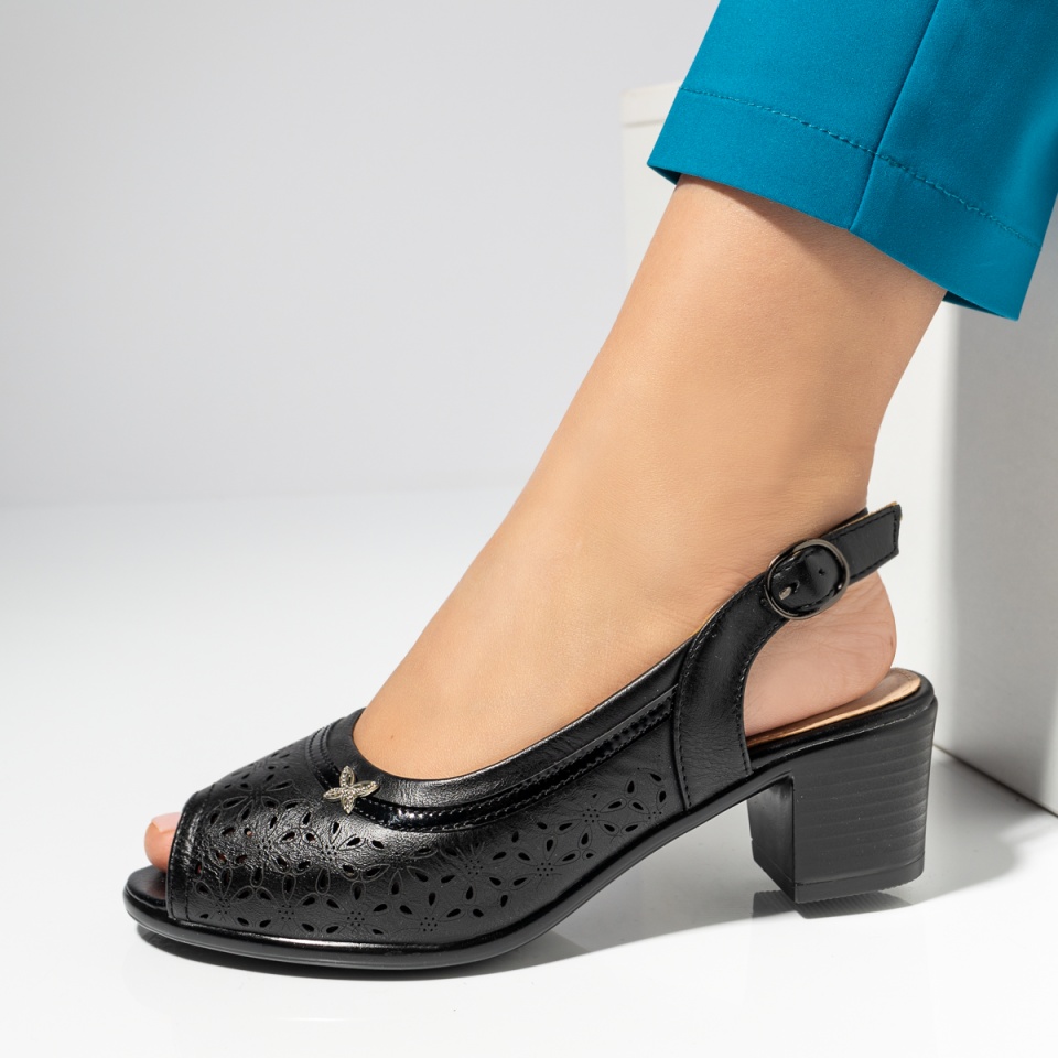 Sandale dama cu toc gros si perforatii negre MOD14261