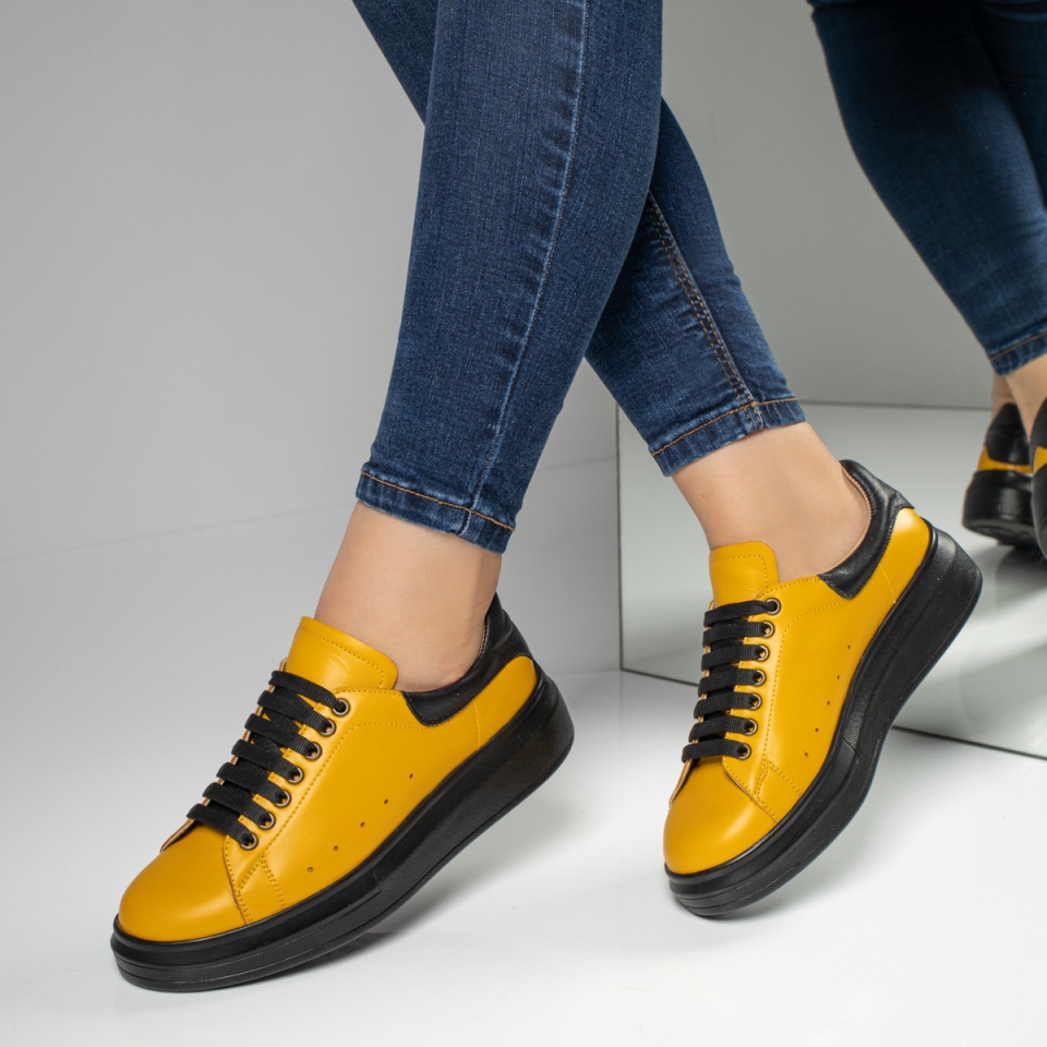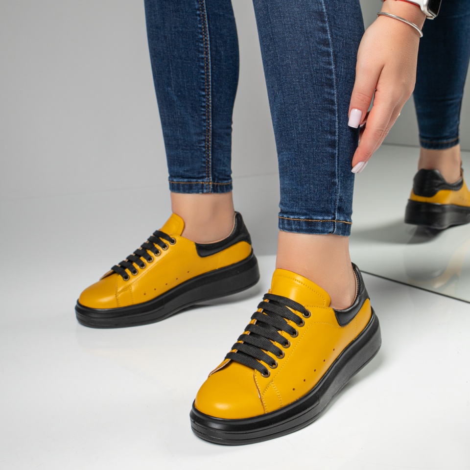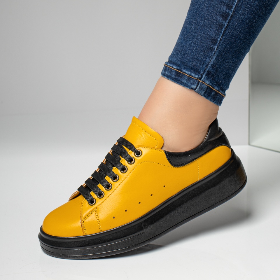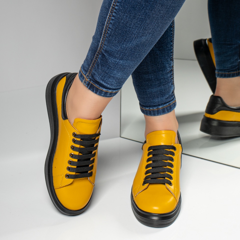 Tenisi dama galbeni cu siret din Piele naturala MOD03628
